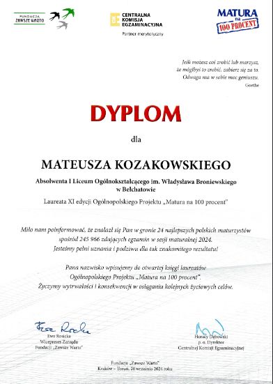 Matura na 100 procent Mateusza Kozakowskiego
