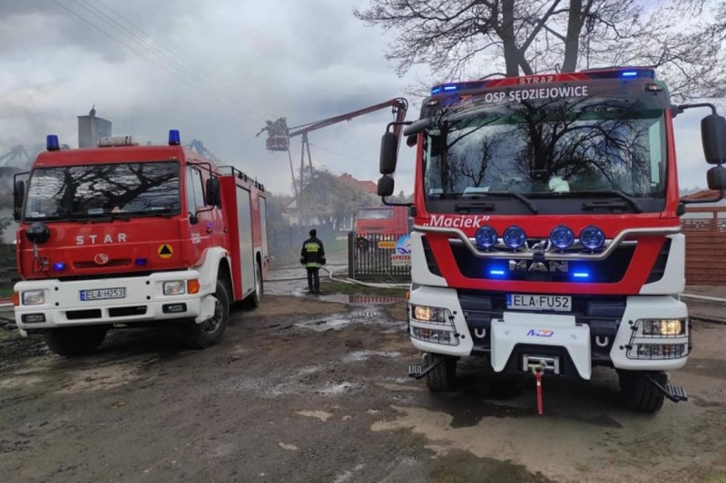 Pożar domu w Łasku