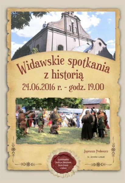 Ks. Jarosław Leśniak – proboszcz parafii Widawa serdecznie zaprasza na Widawskie spotkania z historią, w piątek, 24 czerwca 2016 roku. Początek o godzinie 19.00.
