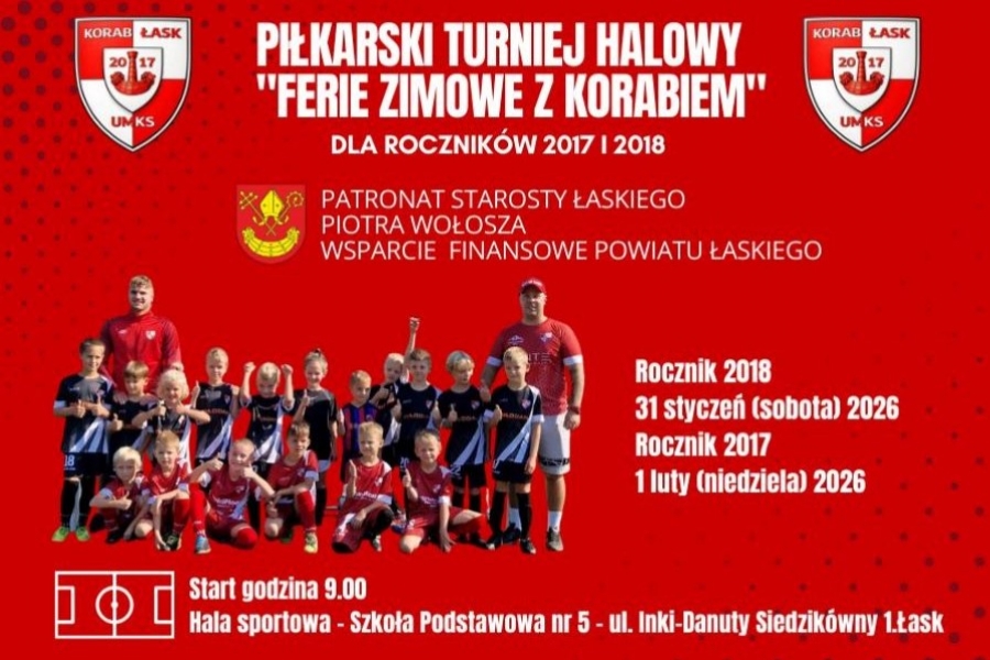 UMKS Korab Łask zaprasza na piłkarski turniej halowy, który odbędzie się w ramach „Ferii piłkarskich z Korabiem”. Wydarzenie będzie doskonałą okazją do sportowego spędzenia zimowej przerwy, a także do wspierania najmłodszych adeptów futbolu z regionu.