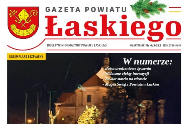 Oddajemy w Państwa ręce wyjątkowy, bo świąteczny numer Gazety Powiatu Łaskiego. To wydanie pełne podsumowań, dobrych wiadomości i historii, które pokazują, jak wiele wspólnie udało się zrobić w mijającym roku.