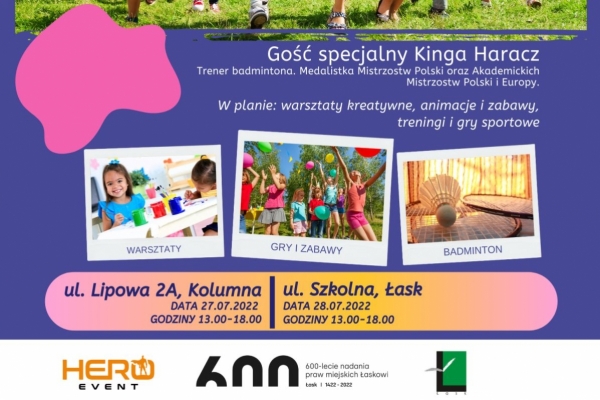 Orlik w Kolumnie 27 lipca (środa), Orlik w Łasku 28 lipca (czwartek) godz. 13.00 - 18.00. Gość specjalny Kinga Haracz. W planie warsztaty kreatywne, animacje, zabawy, treningi i gry ruchowe.