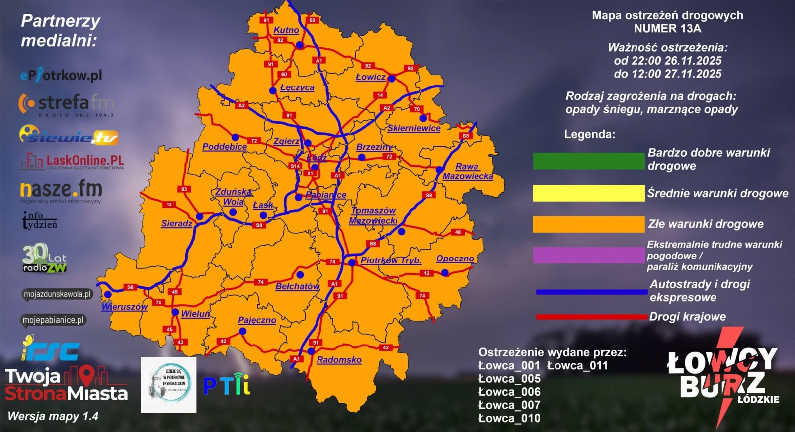 Stopień zagrożenia: ZŁE WARUNKI DROGOWE