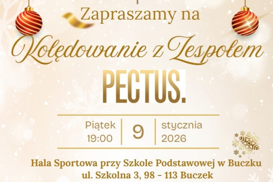 Już w najbliższy piątek o godzinie 19.00 rozpoczniemy rodzinne Kolędowanie z Zespołem PECTUS! To niezwykłe wydarzenie odbędzie się w Hali Sportowej przy Szkole Podstawowej w Buczku, ul. Szkolna 3.