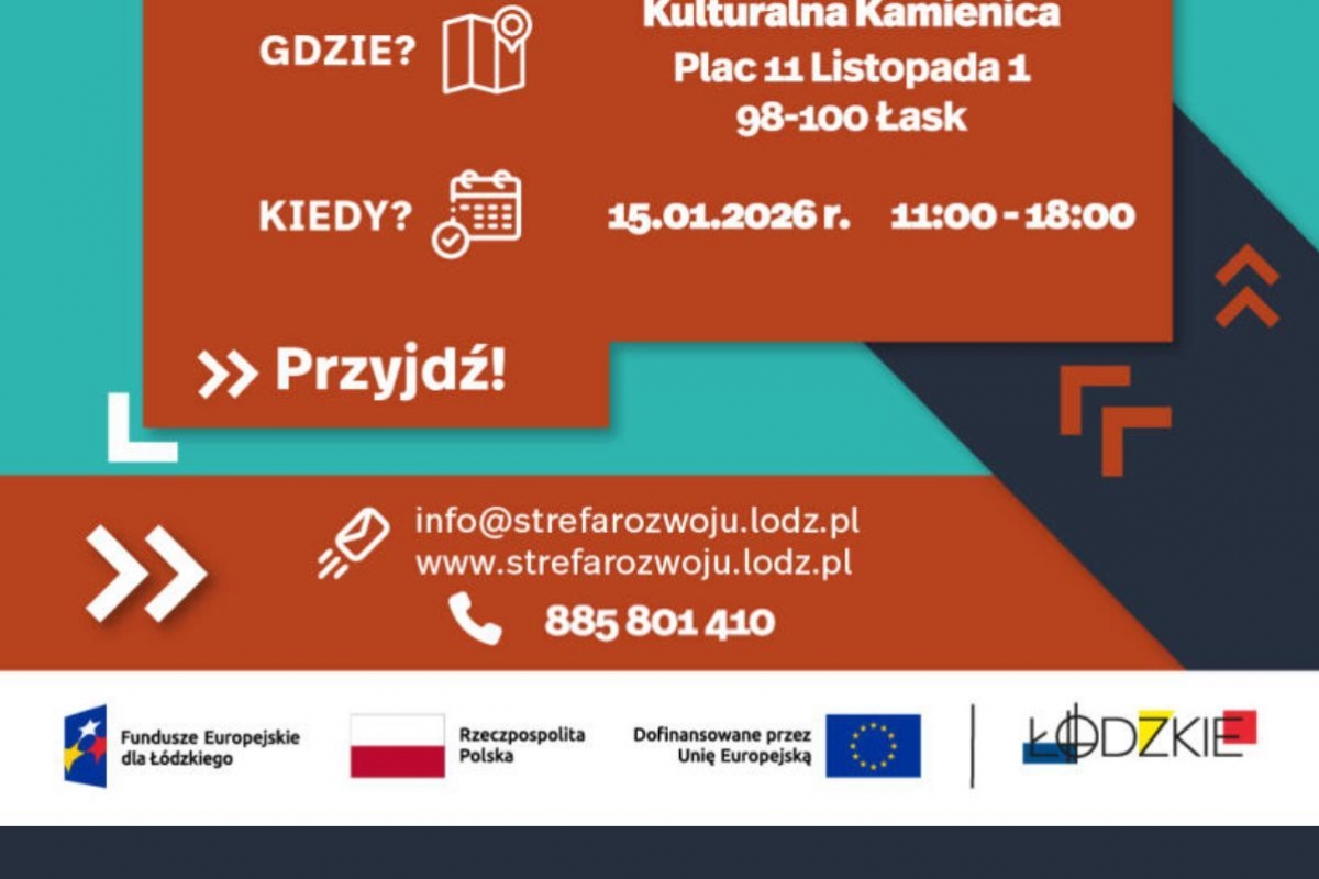 Łódzka Specjalna Strefa Ekonomiczna zaprasza przedsiębiorców oraz pracodawców na Dni Otwarte projektu „Strefa RozwoYOU 3.0”, które odbędą się 15 stycznia 2026 r. w godzinach 11:00–18:00 w Kulturalnej Kamienicy przy Placu 11 Listopada 1 w Łasku (sala, I piętro).
